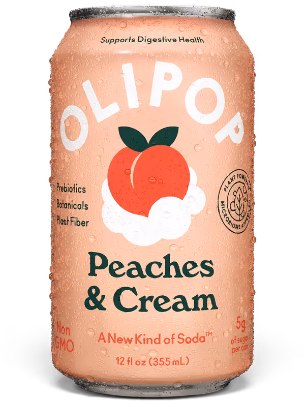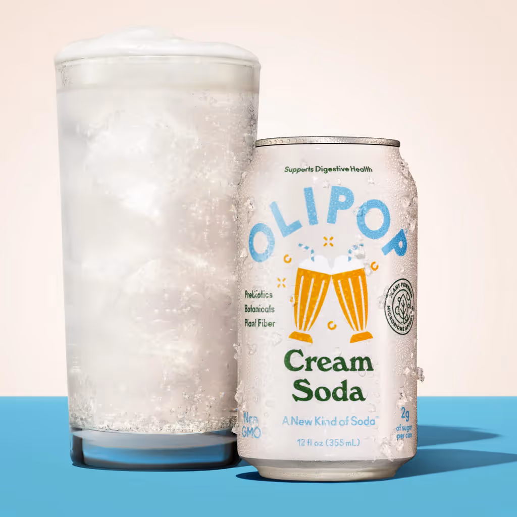 Olipop is a low-sugar, high-fiber prebiotic soda that combines nostalgic flavors with gut-friendly ingredients to support digestive health.