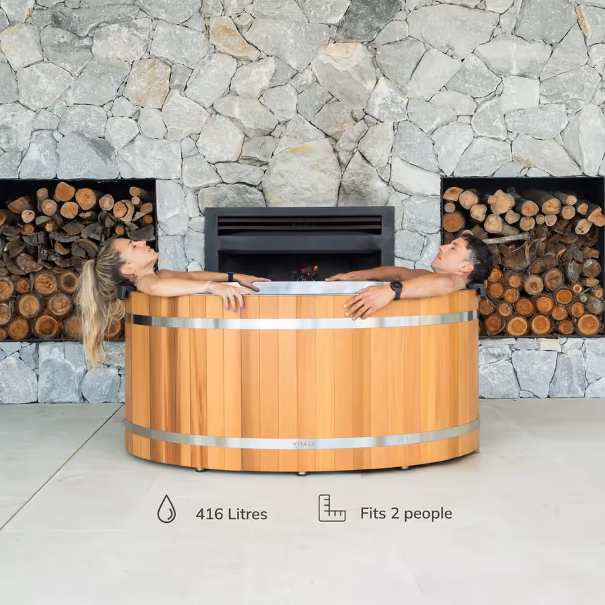 Cedar wood ice bath with natural aesthetic and powerful chiller, bringing spa-level wellness to your home.