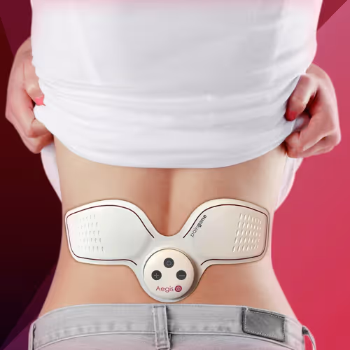 A period pain relief device that uses TENS therapy to block menstrual cramps without pills.