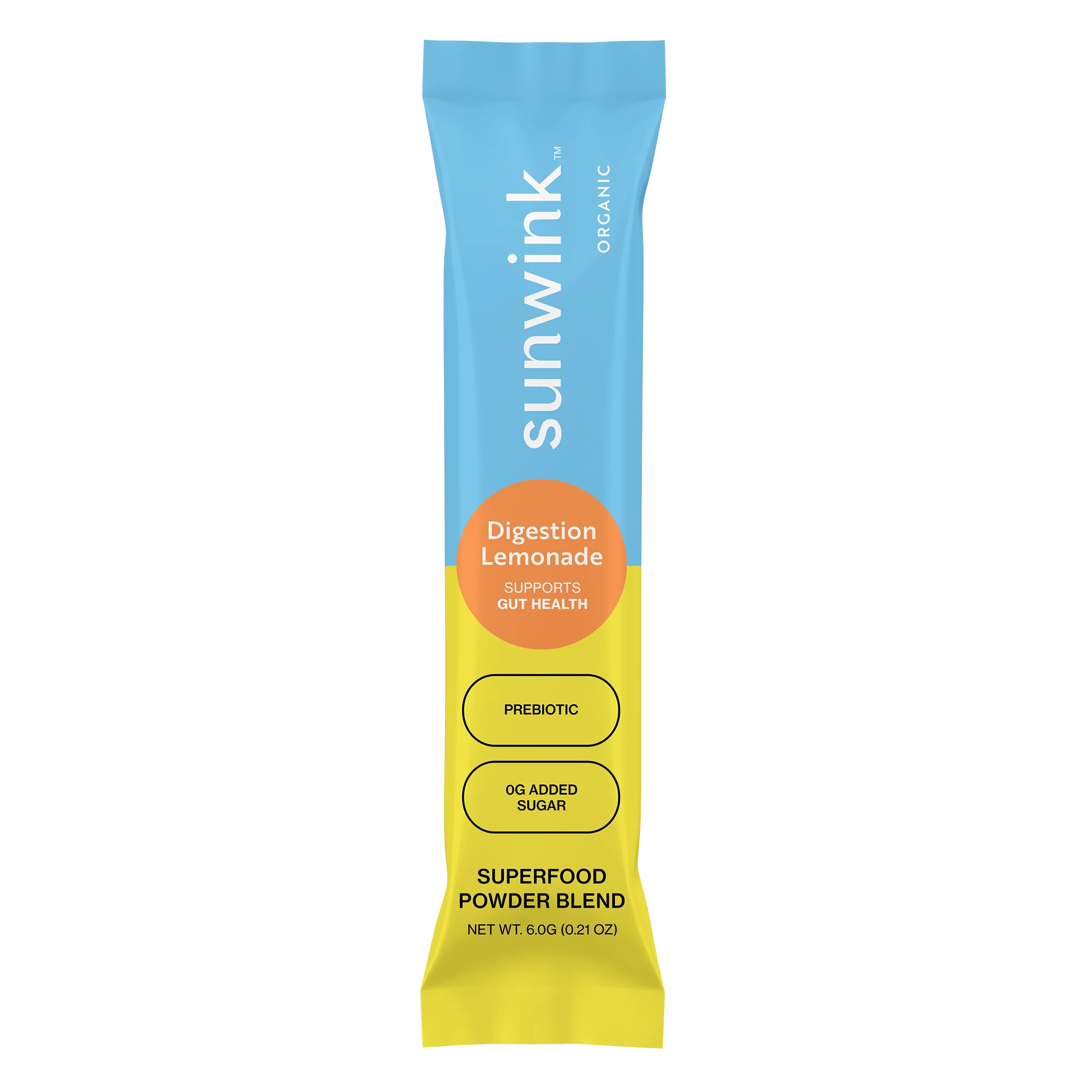 Digestion Limeade Fiber Powder is Sunwink's answer to boring, gritty fiber supplements. Featuring chicory root inulin (a prebiotic fiber), burdock, and tangerine peel, this powder supports digestive health and regularity with a clean lime taste.