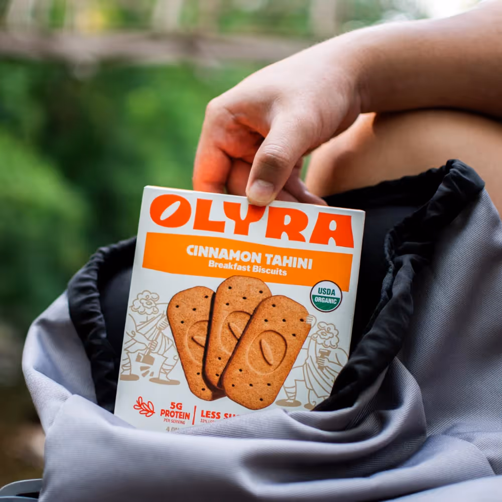 These crispy whole grain biscuits are made from the same four ancient grains (spelt, oat, barley, lupine) that have sustained Mediterranean diets for millennia. With 5g protein and 4g fiber, they provide real sustenance for your morning.